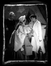 ... but then we hear they're after us... and so we loaded up the boat, and a raft we found... and then we had us some adventures... Jim got stung by a snake, and I dressed up as a girl to get him help... and then two men come lookin’ for Jim because he was a run away, and we fooled